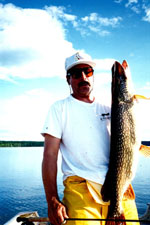 One of the best times to fish for trophy northern pike is the spring (mid-June), the first two or three weeks after ice leaves the lake during the post-spawn season. At this time, all sizes and sexes of pike can be found together in the shallow water, 1-6 feet. Here the pike are most active and will feed voraciously during a 3-8 week period. The fish will hold in the shallow water until the water temperature reaches 68 degrees.